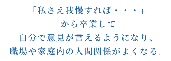・「私さえ我慢すれば…」から卒業できて、自分で意見が言えるようになり、職場や家庭の人間関係がよくなる